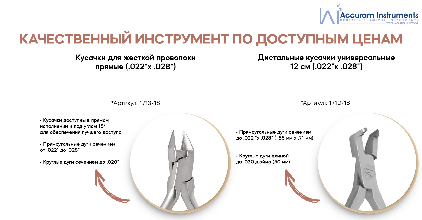 При покупке 3-х ортодонтических инструментов (дистальные, лигатурные и щипцы Вайнгарта) цена на брекеты будет снижена. Подробности уточняйте у менеджеров. Акция действует при одновременной покупке двух и более брекетов и 3-х инструментов.